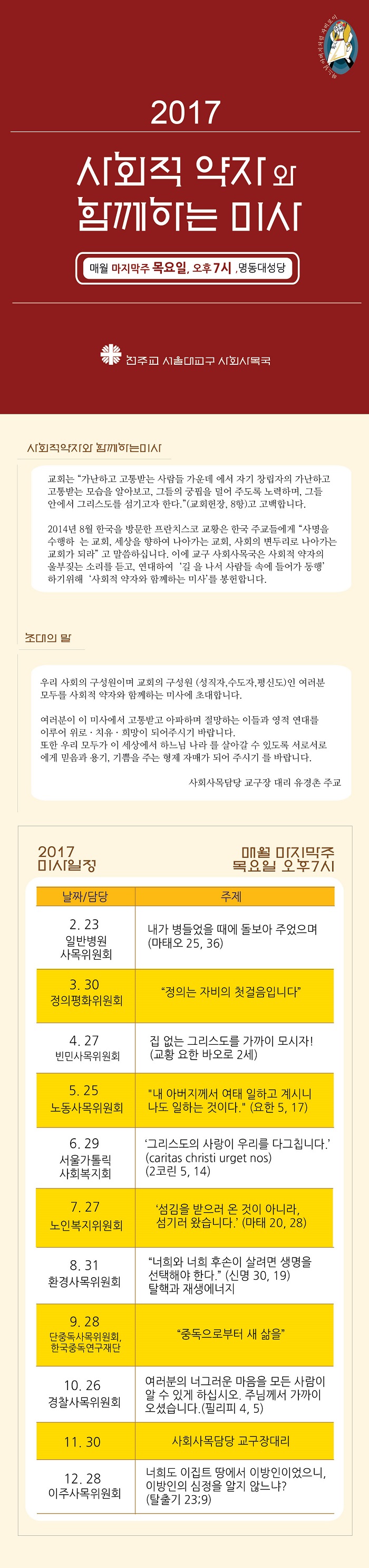[공지] 2017 “사회적 약자와 함께하는 미사” 안내