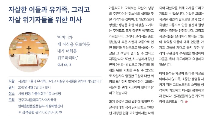 [공지] 자살한 이들과 유가족, 자살위기자들을 위한 미사 안내