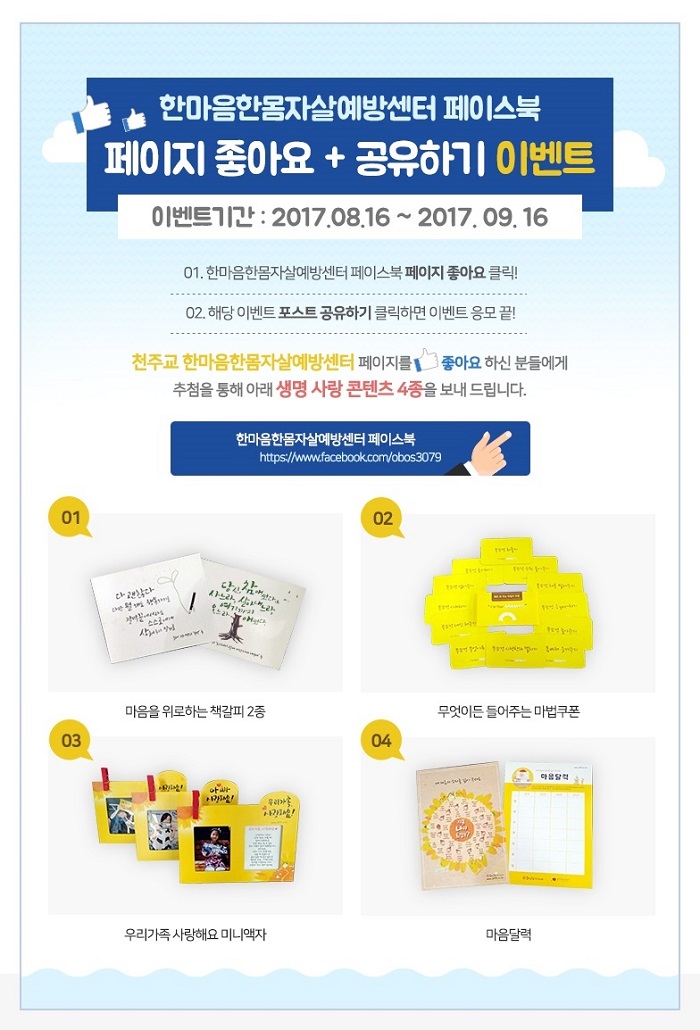 당첨되신 분들께는 개별적으로 페이스북 메시지를 보내드리며, 2주 동안 회신이 안되면 생명사랑 콘텐츠는 도움이 필요한 이웃에게 전해집니다! :D)