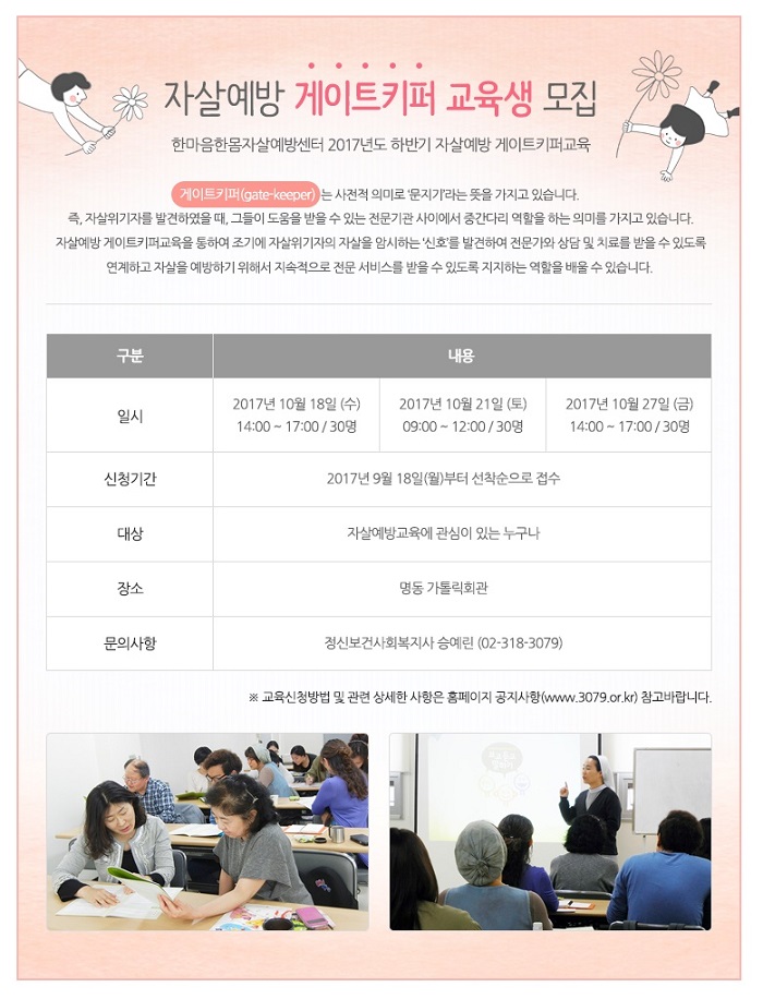 [2017년 하반기 자살예방 게이트키퍼 정기교육 교육생 모집 안내]