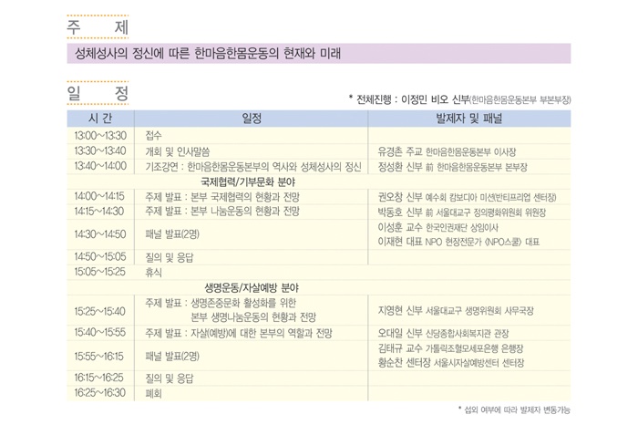 [행사] 한마음한몸운동본부 설립 30주년 준비 심포지엄 초대