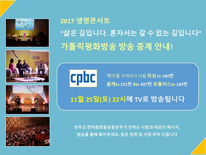 [공지] 2017 생명콘서트 CPBC TV 방송 중계일정 안내