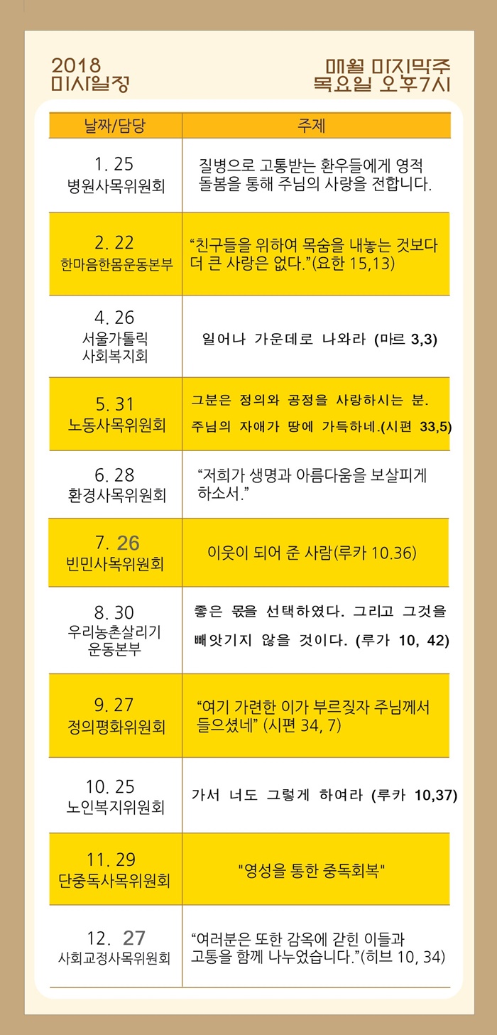 [공지] 2018 사회적 약자와 함께 하는 미사 연간일정 안내