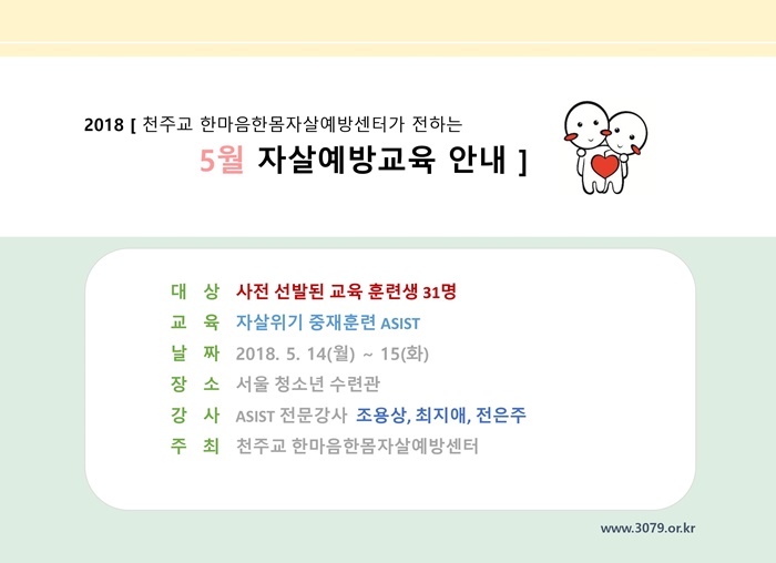 [공지] 2018년 5월 자살예방교육 일정 안내