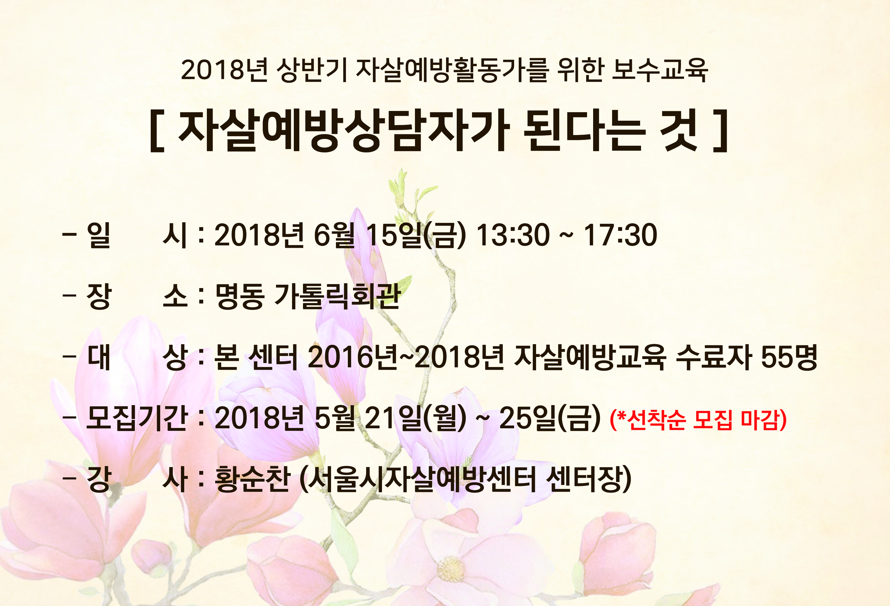 [모집마감] 2018년 상반기 <자살예방활동가를 위한 보수교육> 실시 안내