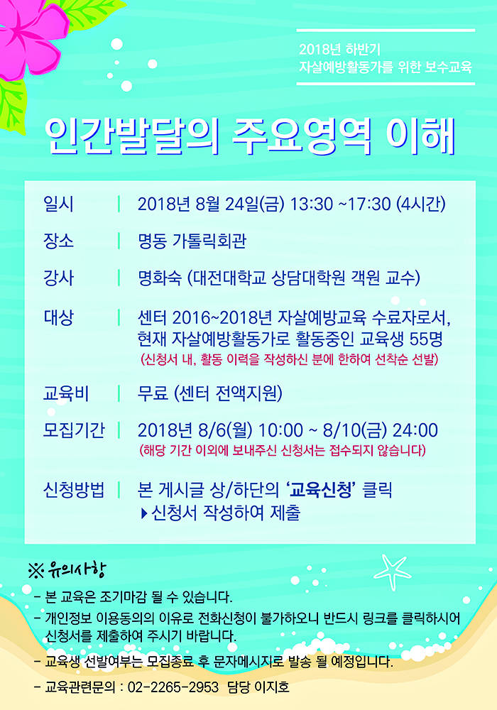 [모집마감] 2018년 하반기 [자살예방활동가를 위한 보수교육] 실시