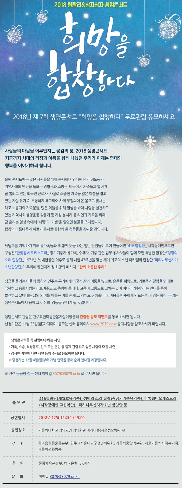 [응모마감] 2018 생명콘서트 무료관람 응모 신청 마감되었습니다.