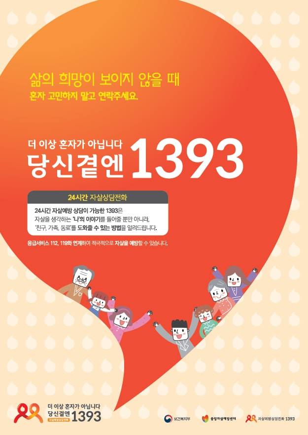 # 27일부터 개통하는 자살예방 전문 상담전화 1393. (출처=보건복지부)