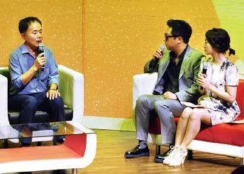 ▲ 9월 25일 서울 가톨릭대학교 성의교정 마리아홀에서 열린 2014 랄랄라&살자살자 생명콘서트에서 김학일씨(왼쪽)가 이야기를 나누고 있다. 이힘 기자