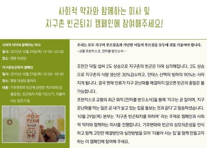 [공지] 사회적 약자와 함께 하는 미사 개최 - 10/29(목) 명동성당