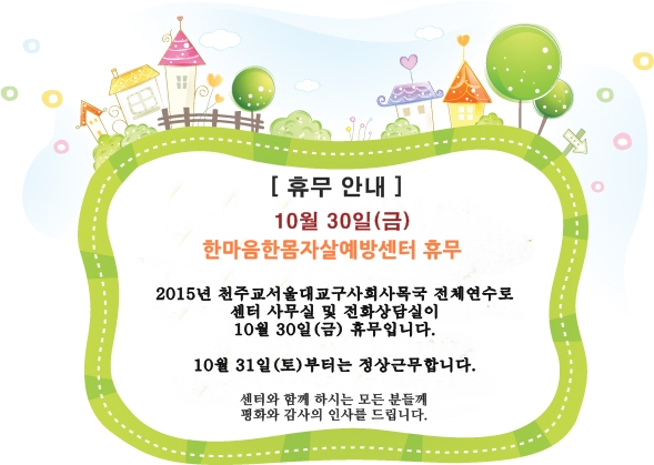 [공지] 센터 사회사목국 전체연수 10/30(금) 휴무 안내