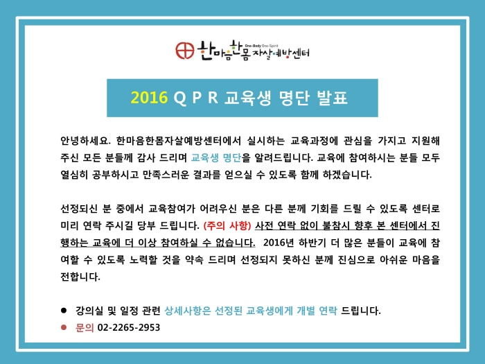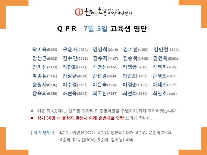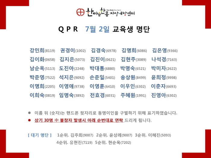 [공지] QPR 게이트키퍼 교육 마감 안내