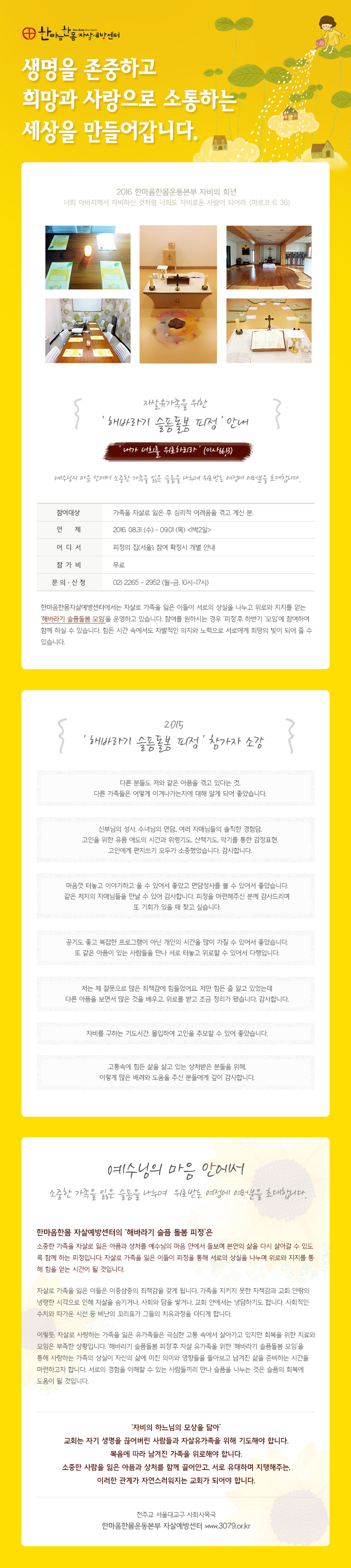 [모집] 2016 '자살유가족을 위한 해바라기슬픔돌봄 피정'