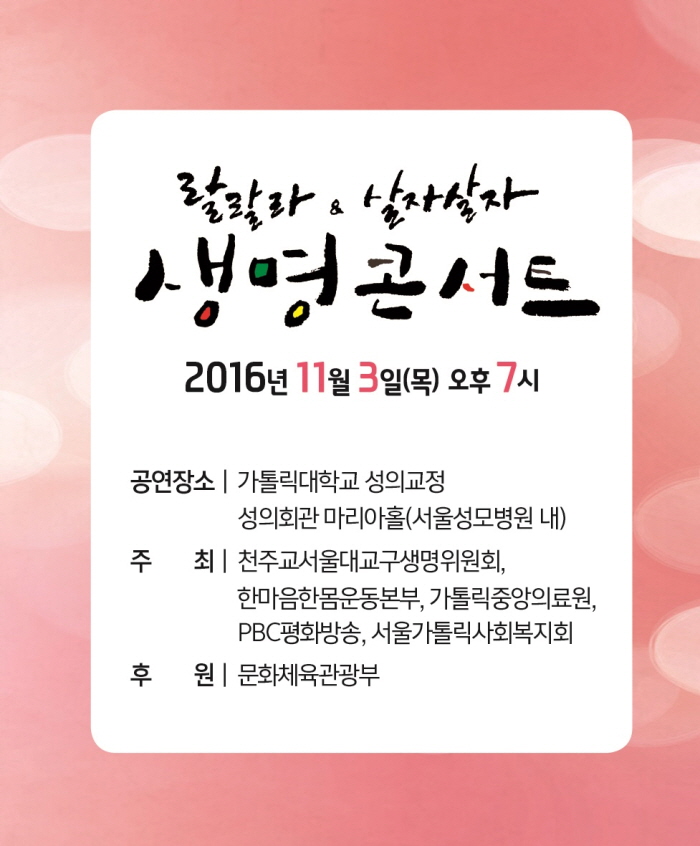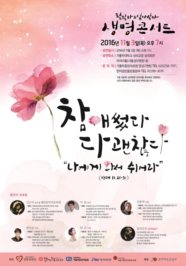[행사] 2016 생명콘서트 초대 - 가수 알리, 변진섭, 김용택시인 등 출연