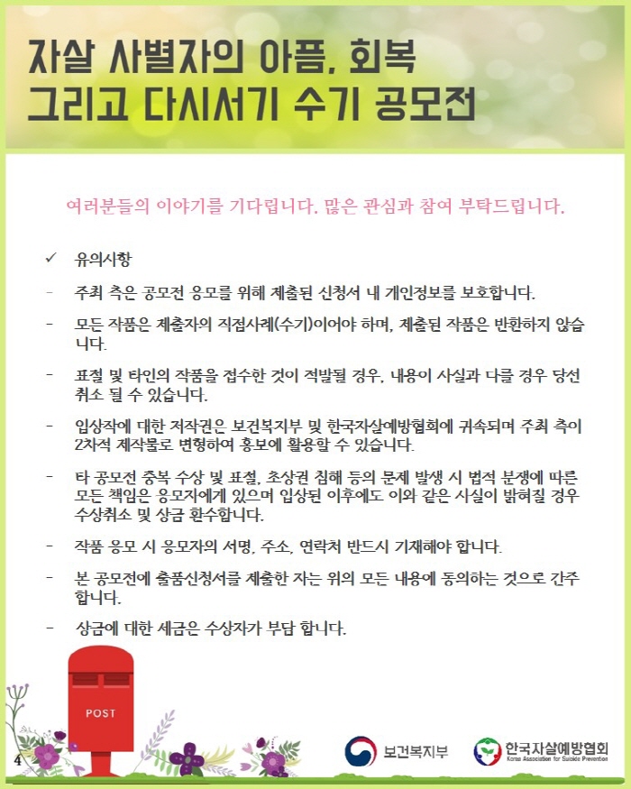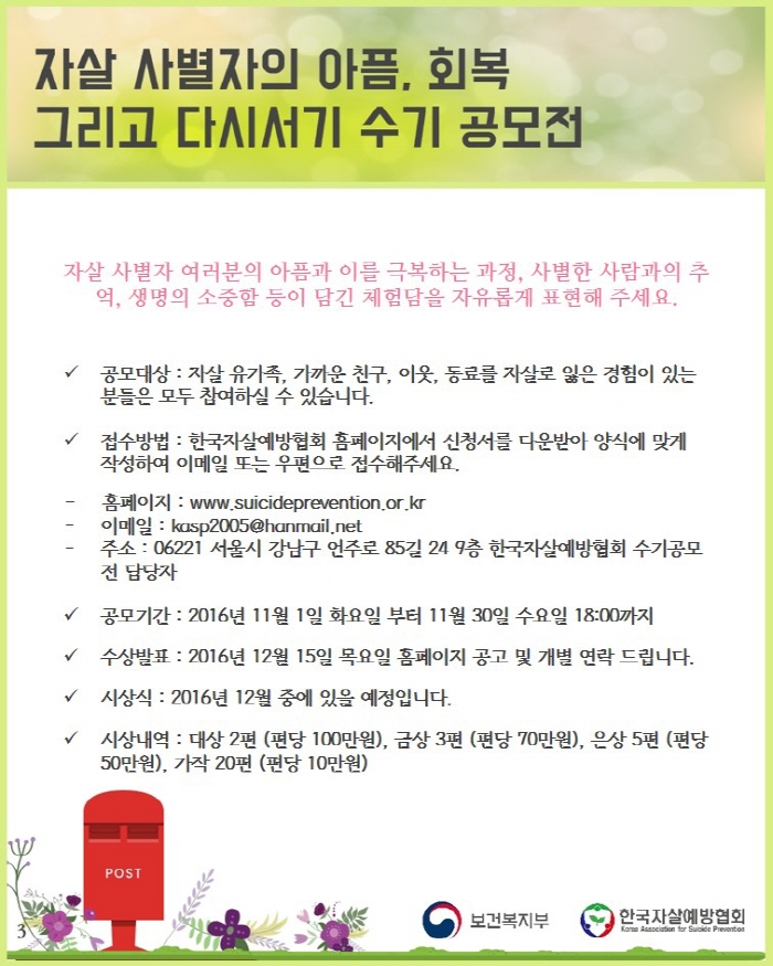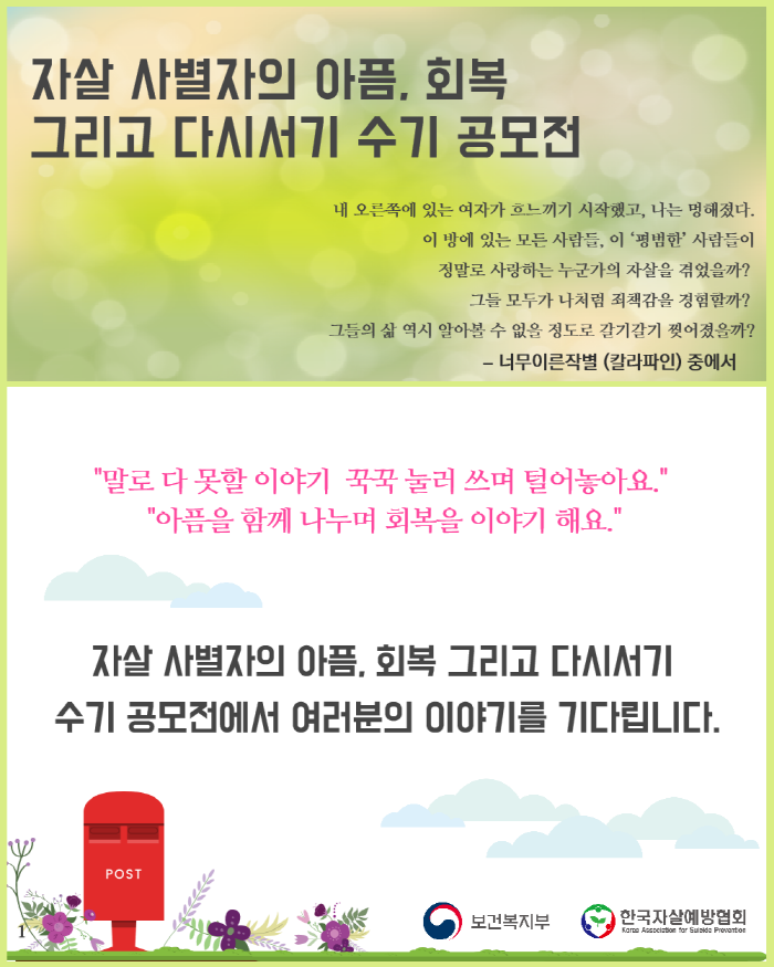 [공지] 자살 유가족의 아픔, 회복, 그리고 다시서기 수기공모전 안내