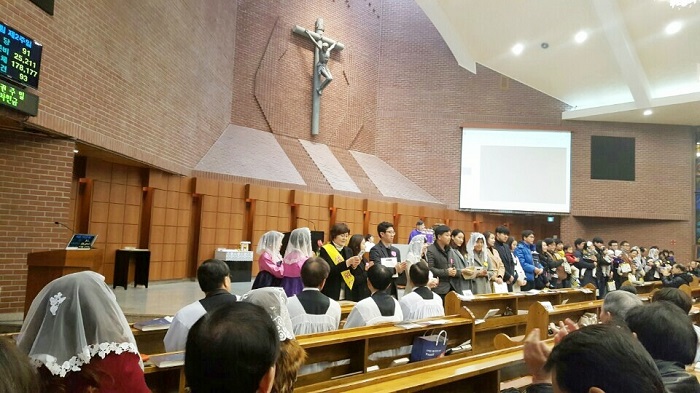 당일 날 행사가 시작되면서 이벤트 옷을 입고 있는 행사요원들이 눈에 띄자 사람들은 많은 관심을 가지고 무슨 일을 하는지? 우리가 어떠한 활동을 하는 단체인지 상세히 물어 보시는 분들도 계셨고 저희 단체를 이미 알고 계시는 교우들은 고생이 많다면 함께 응원을 해 주셔서 기쁨의 행사가 되었습니다.