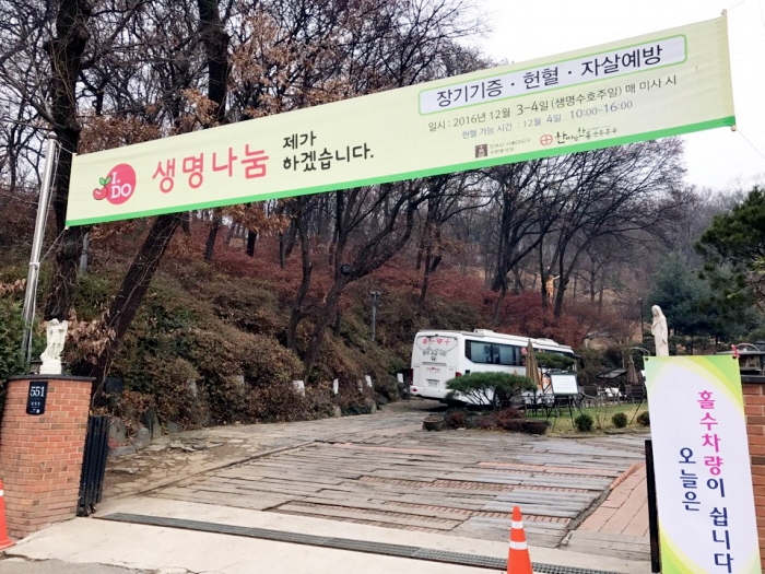 이날 우면동성당에서는 자살예방캠페인을 포함, 장기기증 및 헌혈 등이 함께 진행되며 생명나눔 실천의 장이 열렸습니다.